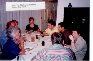 This photo shows where the Forum process was born…in our living room. It could hold up to 24 [ same for dining room -but usually keep to 13-17 for optimal dialogue purposes