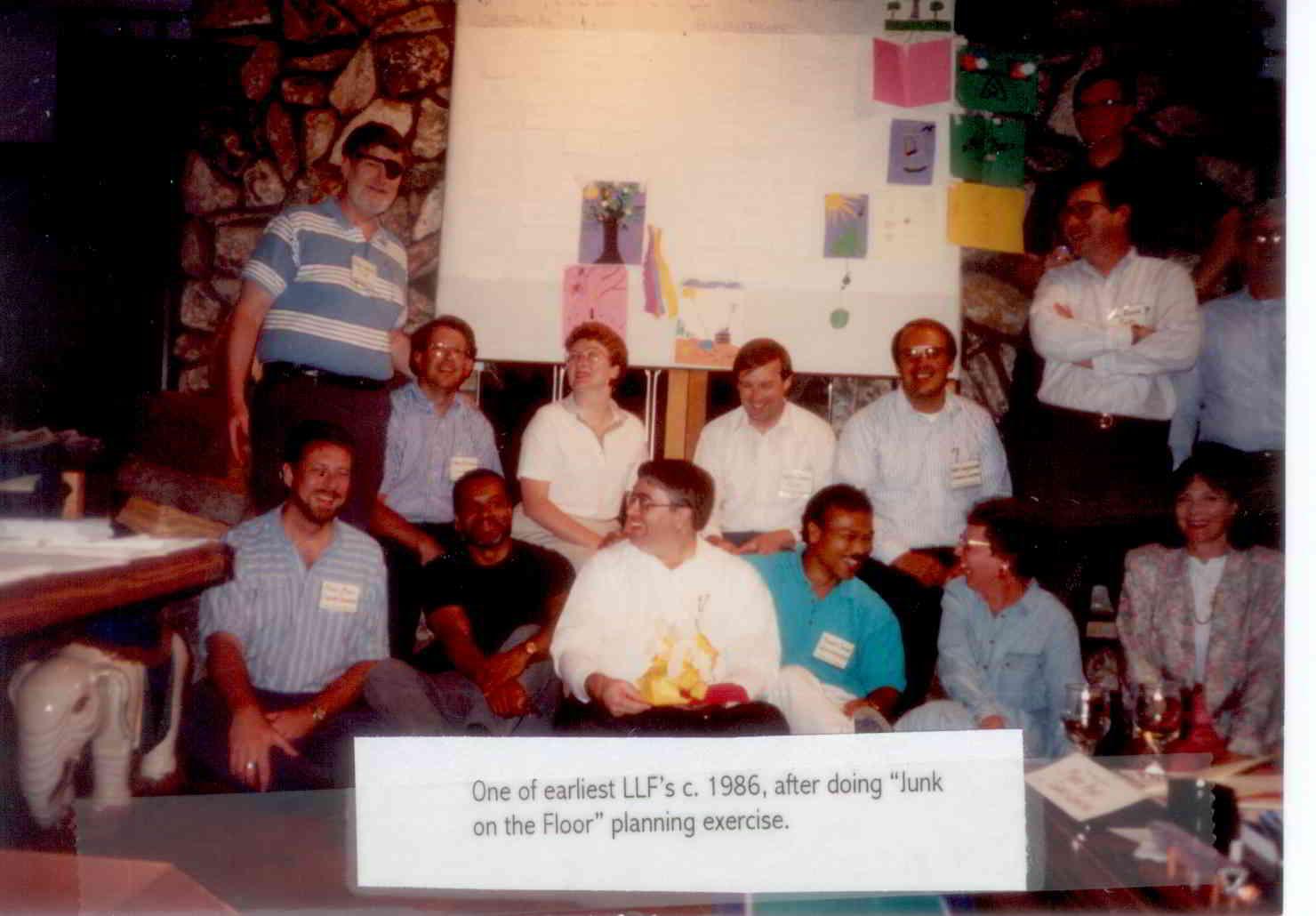 After the “10 year personal planning ” exercise, which is always provocative and ebullient……some of the manifestations of that learning activity are visible, as is their joyful individual and group feelings about the process and the results!! This session was held in our home, which could hold meetings and meals for up to 24 participants. It was a week long in 1984. Here are 12 early graduates @ just before “Commencement”. Also our home was a unique atmosphere for openness and out-of -the box thinking. And, it allowed huge flexibility in the agenda….use of props….break-out areas, etc.